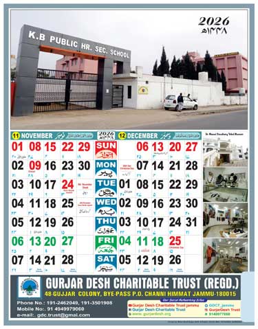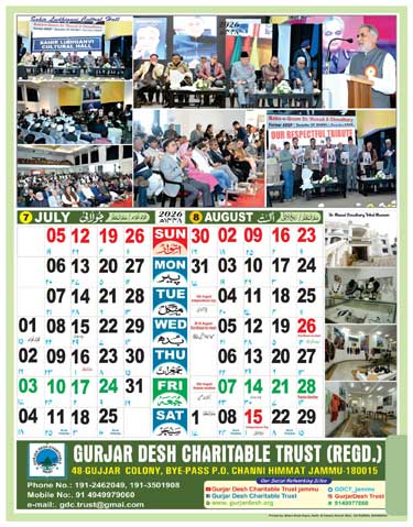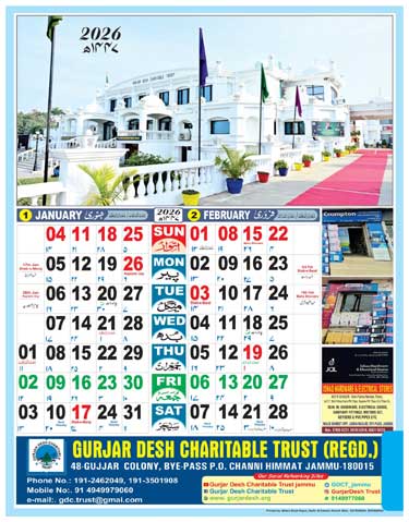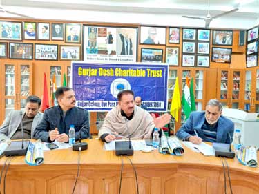 The Monthly Governing Body Meeting of Gurjar Desh Charitable Trust was held today, February 1, 2026 at the Conference Hall (Library) of GDCT Complex Jammu, under the Chairmanship of Jb. Arshad Ali Choudhary, Chairman of the Trust. Annual wall Calendar of GDCT was released on this occasion. The agenda focused on key initiatives, including progress on completion of balance works of Playground