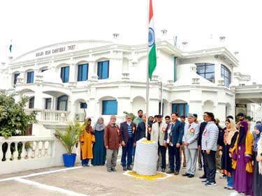 January 26, 2026 – The 77th Republic Day was celebrated today with immense pride and nationalistic enthusiasm at the Gurjar Desh Charitable Trust (GDCT) Jammu. The celebrations commenced with the unfurling of the National Flags by the Chariman Gurjar Desh Charitable Trust Mr. Arshad Ali Choudhary in the august presence of Haji Abdul Hamid Chowdhary, Patron-in-Chief of GDCT; Advocate Shah Mohammad Chowdhary, Former Chairman; Er. Mohammad Sadiq Azad, General Secretary; Ch. Salam ud Din Bajard, Er. Mohammad Taj Chowdhary, Senior Trustees and Students of Babu Faiz Ahmed Study Centre, alongside other esteemed dignitaries and faculty members followed by a stirring rendition of the National Anthem, setting a tone of deep patriotism for the day's proceedings. In his keynote address, Chairman Mr. Arshad Ali Choudhary delivered a motivating speech that resonated deeply with the audience. He highlighted the significance of Republic Day, urging students to embrace a sense of pride and zeal as future citizens of the nation. His words were aimed at fostering a spirit of oneness and nationalistic dedication among all participants. Republic Day was also observed at the Brig. Khuda Baksh Memorial Public Higher Secondary School and Rambagh Kullian Primary School (running under the aegis of Gurjar Desh Charitable Trust). At KBPS, the National Flag was unfurled by the Principal, Ms. Nehreer Khan. Whereas, Senior Trustees Ch. Shouket Javed and Ch. Sajad Majeed Chechi unfurled the National Flag at Rambagh Kullian Primary School. The event featured a series of dazzling cultural performances by the students, including patriotic songs and choreographed acts that showcased the vibrant heritage of India. The "glittering event" concluded with a renewed commitment from the Gurjar Desh Charitable Trust to continue nurturing patriotic values within the educational framework of the institution.