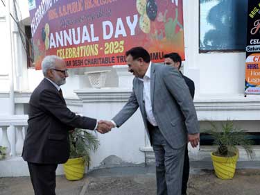 The day started with a visit to the grave of Baba e Qoum Late. Dr Masud Choudhary by the chief guest and all other dignitaries. The Hon'ble Minister laid foundation stone of playgrounds & Vocational Training Centre and also inaugurated the newly constructed & renovated Dr. Masud Choudhary Boys Hostel of BKBP School. The Ceremony started with a visit to GDCT & presentation of bouquet to the Esteemed Chief Guest Jenab Javed Ahmed Rana Sahib (Minister for Jal Shakti, Forest-Ecology, Environment & Tribal Affairs Department, Government of Jammu & Kashmir J&K Government & Prof. (Dr.) Parikshat Singh Manhas, Chairman J&K Bose, as the Guest of Honour by Principal KBPS, followed by the lighting of the Ceremonial Lamp, by the Chief Guest, Guest of Honour, Patron-in-Chief GDCT Haji Abdul Hamid Choudhary, Chairman GDCT Jenab Arshad Ali Choudhary. The Director BKBPS Mr. Iftikhar Hussain Chauhan warmly welcomed the Chief Guest along with all other dignitaries, Parents and students and highlighted the school's achievements. This was followed by a Welcome Song, which was performed with great energy and enthusiasm.